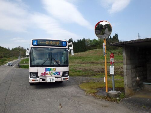 上荒沢バス停 次のバスまで30分近くある。予報ではこれくらいの時間から雨のはずだが、空はまだ青い。 2023.05.01[Mon]上荒沢《標高68.9m》15:10→新発田駅15:40*1新発田市 コミュニティバス、¥200、15.8km 上荒沢~新発田駅(新発田市) [Google MyMaps] 新…